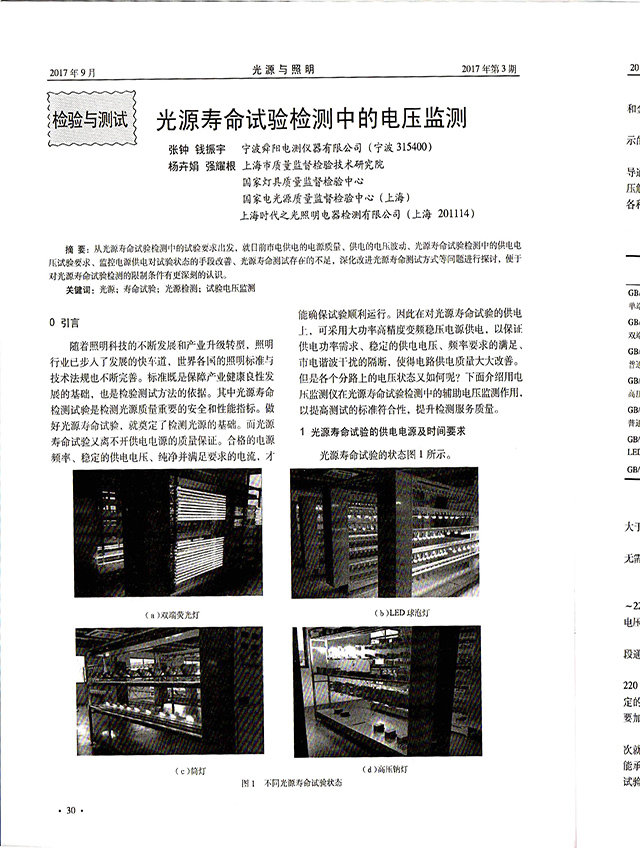 《光源壽命試驗(yàn)檢測中的電壓監(jiān)測》載于《光源與照明》2017年第3期